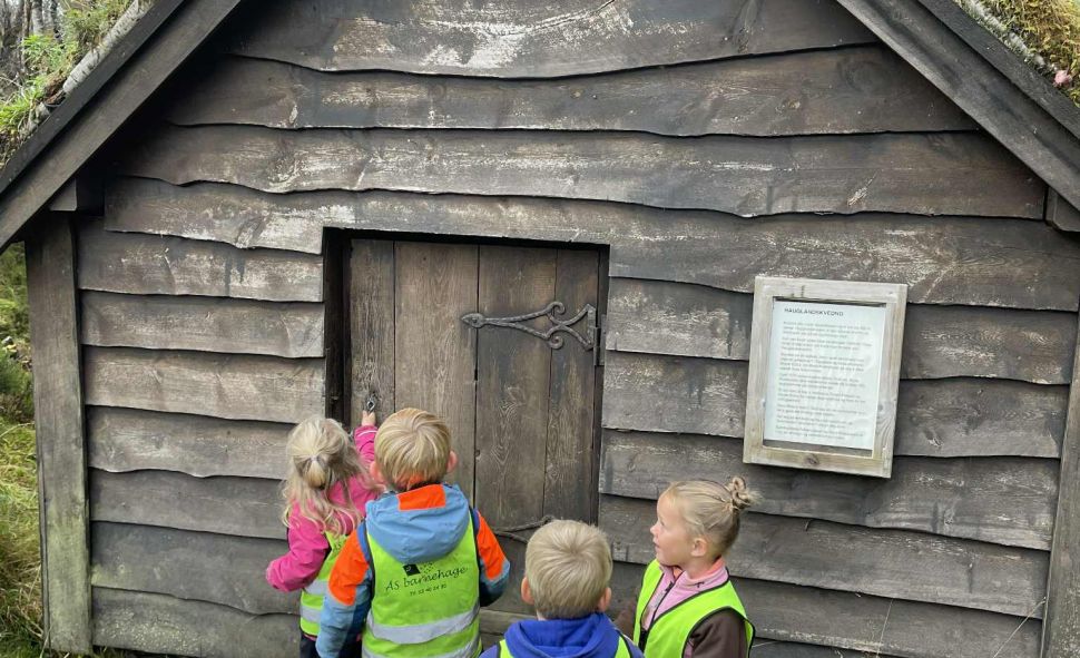 Me likar tur i nærmiljøet vårt, -både til fots og med barnehagebilen vår. Me er ein sentrumsnær barnehage, som ligg flott til med skogen som god nabo. Me har vår eigen leirplass, og me har Sunnhordlandstunet, Museet, ikkje så langt vekke.
