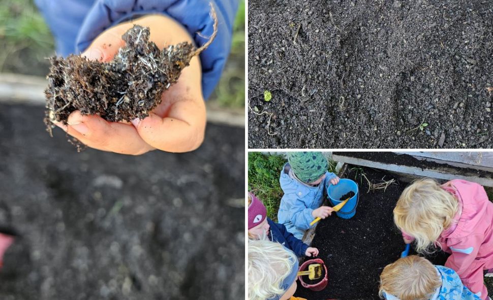 Hvis grashoppene får valget mellom å leika ute eller inne så velger dei veldig ofte å gå ut. Dei trenger plass til å utfolde seg, plass til å springe og større rom til å utforske i. Vatn og sølepyttar er veldig kjekt, og her finner vi masse kjekk leik.